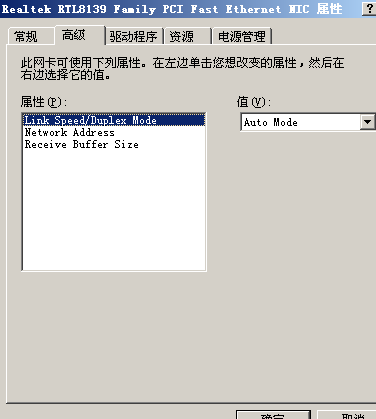 2、进入“配置”对话框后选择“高级”按钮,把“link speed”一项的值设为“auto”即可