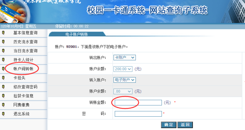 先进行账户间转账,根据所选择的校园网套餐费用转账。