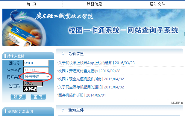 一卡通账号:账号为一卡通卡号(6位) 密码:身份证后六位 (注:身份证含有X的,请往前顺移一位,如44000020000101632X,密码为101632)