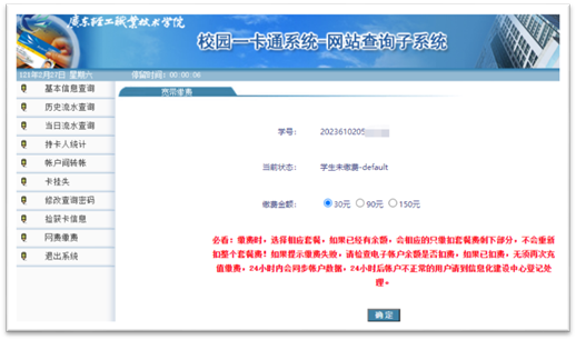 转账成功后进行网费缴费。按选择的套餐缴费。
