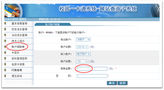 先进行账户间转账,根据所选择的校园网套餐费用转账。