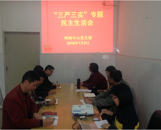 2016年1月5日下午,网络信息中心党支部在广州校区教学楼708召开了“三严三实”专题组织生活会,全体党员参加了本次会议,会议由党支部书记辛继胜主持。